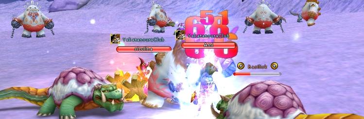 旧5番のエリアでバシリスク相手に範囲どーん♪っとするのですが、バシリスクは遠距離攻撃なので、範囲攻撃の射程から外れちゃうこともシバシバ。 集めるにはちょっとコツが必要だったりして、さらに!遠くから集めようとすると、すぐに剥がれてしまう>< まぁそんなものです。