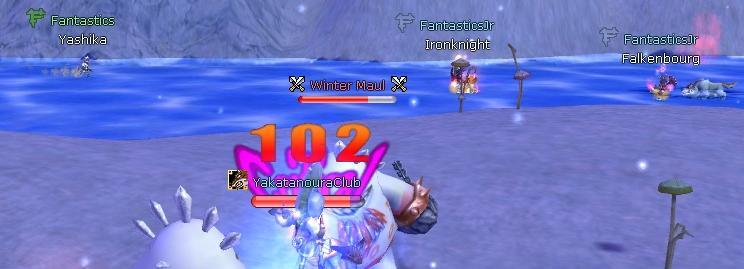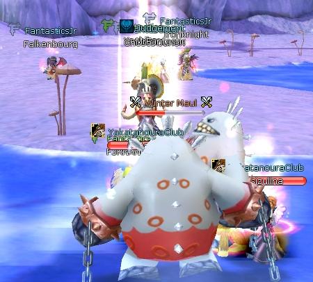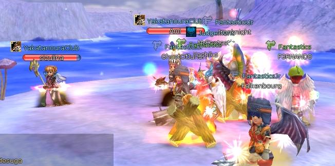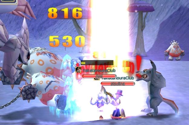 まぁ弱い私達が悪いのですが、こうなったら嫌がらせしてやる!と、一度狩場を離れて、忘れかけた頃に特攻をしかけるw 露骨に横攻撃ですw 相手は人数が多いので、狩場の敵がすぐに枯れてしまい、しかも適正以上のキャラも居たようなので、まったくもって美味しくない状況じゃないかと思います。 そこに嫌がらせの横攻撃ですがら…早くもフォーラムの晒し板に晒されちゃうかな^^;