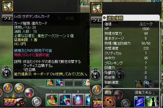 ↑傭兵カード。 スキルの詳細は不明。 アイコンを見る限り攻撃力UpBuffがあるのかな? 試した感じだと今回のクエは手間が掛かるのでスルーしちゃう人も多いんじゃないかと思うんですよね。 前回の時のように。 従っていざ傭兵カードが出回るようになったら、ちょっとした金額になるかもしれませんw と言いつつも、私自身、コンプリート出来るか疑問ですが^-^;