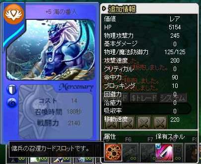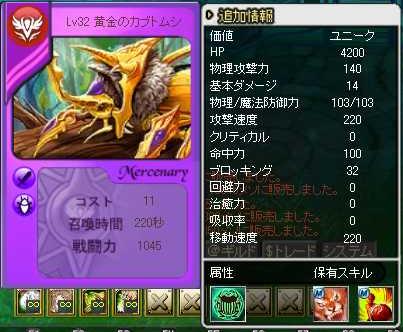 HPと防御は“海の番人”の方が高いですが、カブトはブロッキングとさらにブロッキングBuffを持っています。 総合的な防御効果はカブトの方が高いかな!?っと思うのですが、やはり範囲攻撃を持っている“海の番人”の方が優秀だった訳で…。