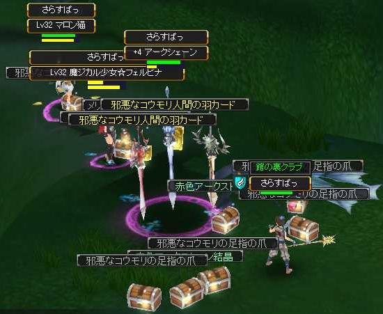 羽が2個同時にドロップしました。 このレベルでもまだまだ期待できるので、ギリギリのところまで繰り返し継続ですね^-^b それにしてもメリエラ傭兵カード溢れ~はどうしたものか汗