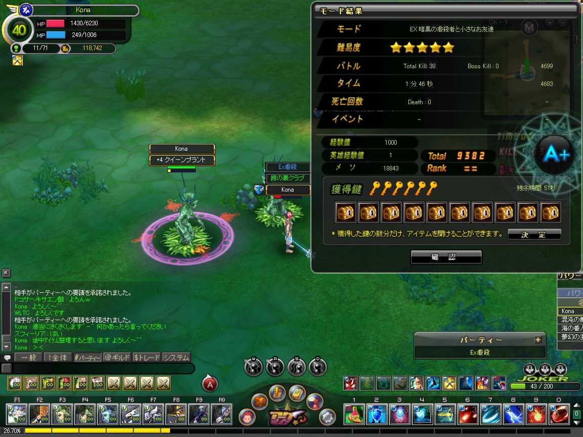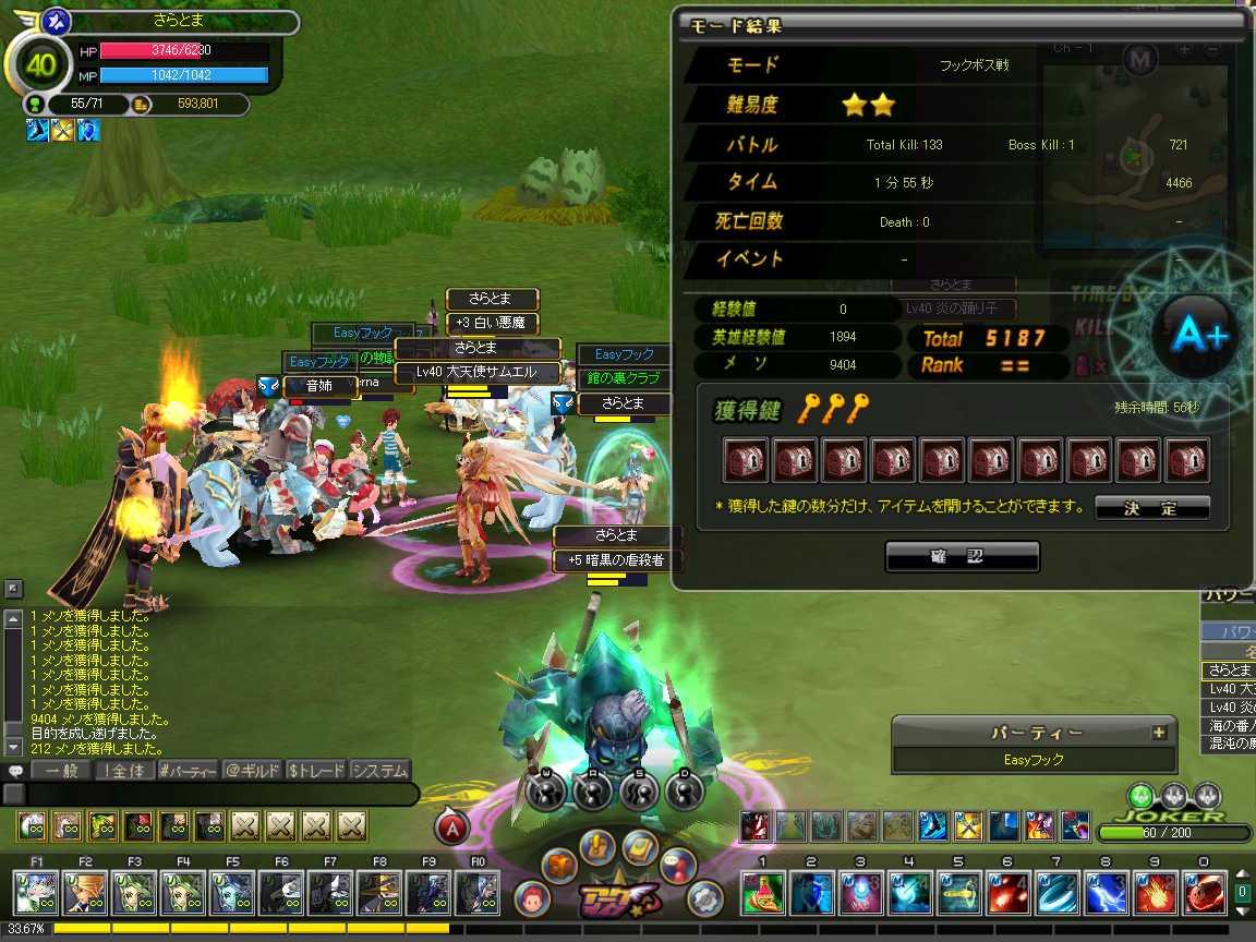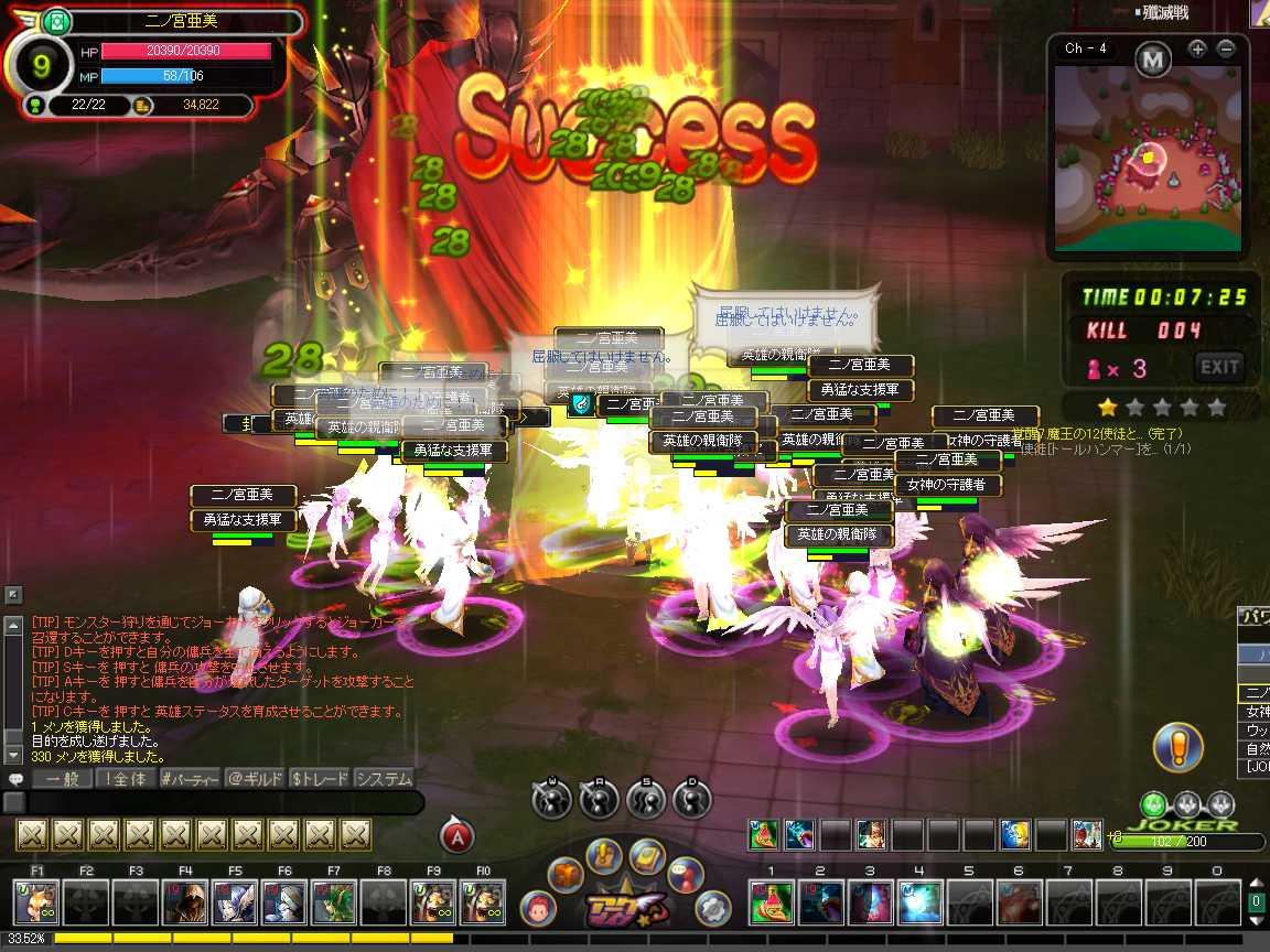 ↑これでは判断しにくいですが、クリアした直後、中央に布陣するのは私だけ^-^; Ex虐殺なので4人PTがデフォ。 1人近くに居るみたいですが、それ以外の人は復活地点w まぁそんなものですww
