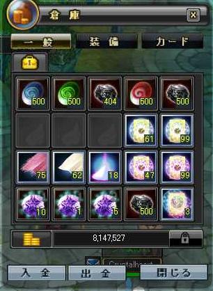 改めて見ると倉庫が狭いですね…拡張課金必要かなぁ><