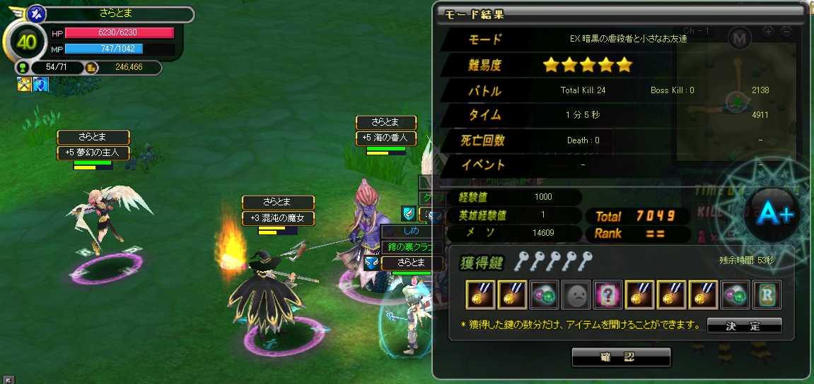 Ex虐殺オンライン♪ コンスタントに稼いでいます♪♪ 今回は計算してみたのですが、Ex虐殺100p繰り返しで250kぐらい稼ぐようです。 これ以外にゴミ装備やコインの処分で150k前後。 1キャラ400k↑って感じですね^-^b 経験値に至ってはまちまちです>< ボロボロPTだとガッツリ経験値が減ってしまいますw まぁ経験値はすぐに溜まるから問題なしって事でw 高級メダルの方は1キャラ20個ぐらいで集まっています。 これも20k換算で400kの収支。 美味しいと思います♪