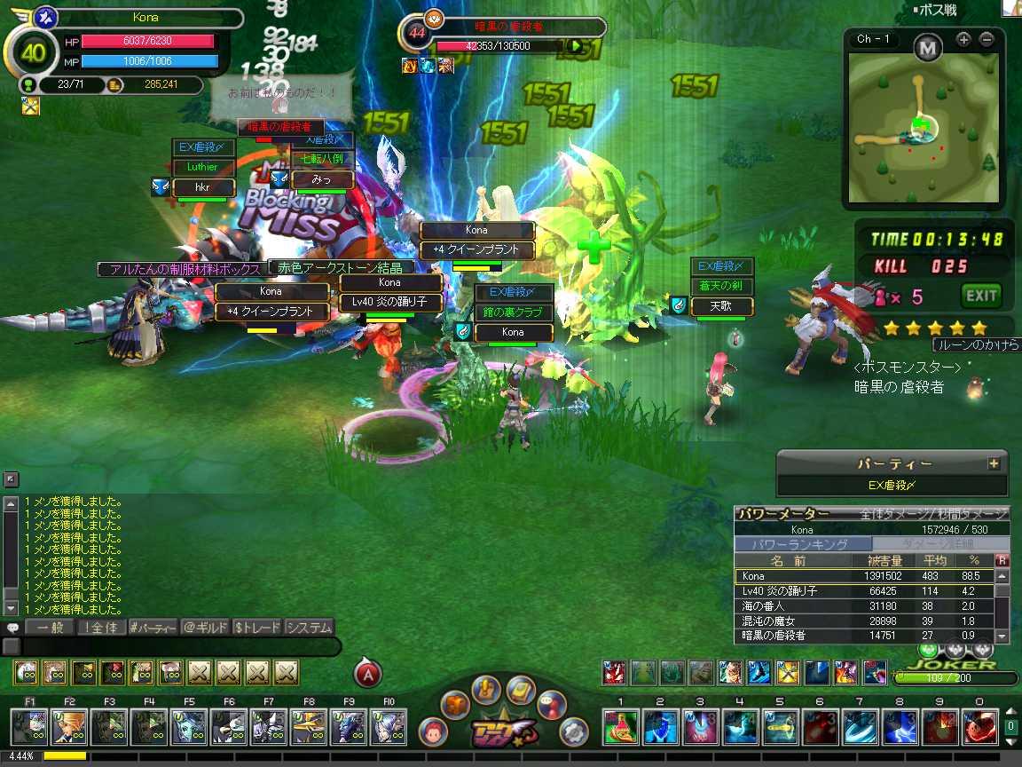 Lv40を祝してEx虐殺の野良PTに参加してきました。 なんと言うか、狩りを楽しむ感じではありませんね^-^; チャットを楽しむ感じでもないし、何気に作業化している所がなんともw 以前Lv44の人とEx虐殺行きましたが、そっちの方がゲームをしているぽくって楽しめたかも?w 贅沢な話ですがww