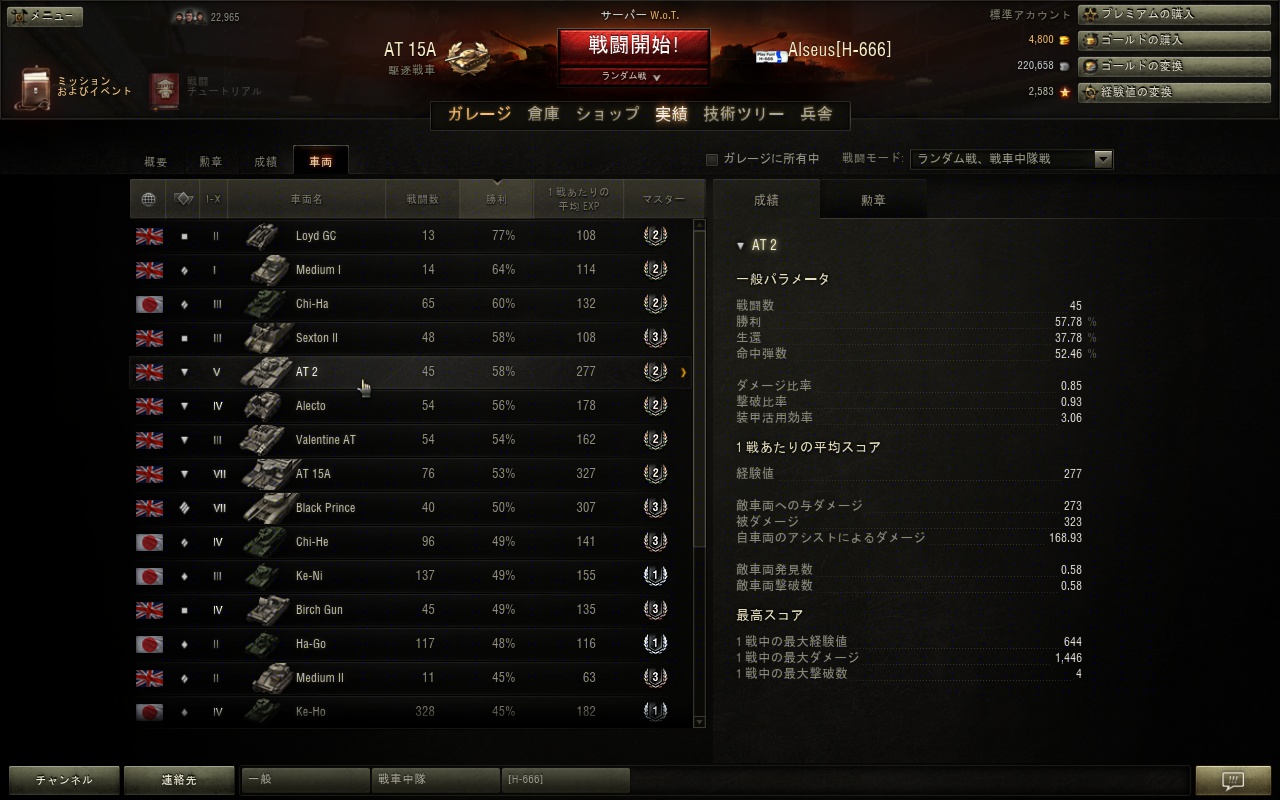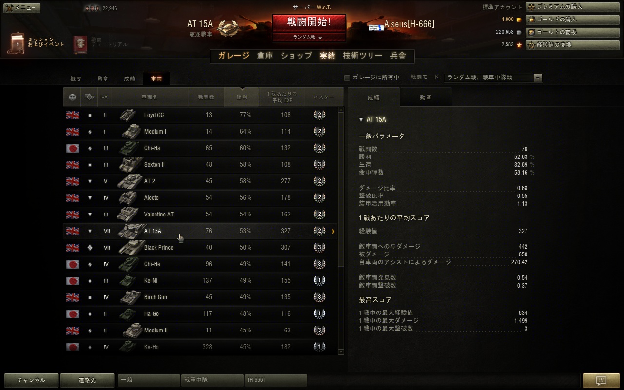 今使っている車両にて勝率の方が若干上がっている訳ですが、