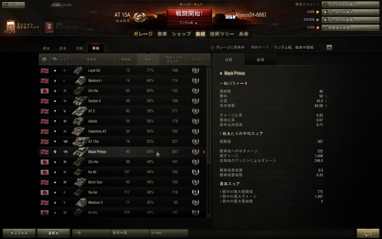 Tier7ブラックプリンスは、所有戦車の中ではそれなりなので保管予定。