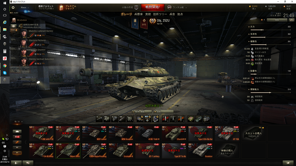 お客さんが来た際に、Tier5ぐらいで戦車を楽しんでもらい、その後は新規にアカウントを取ってもらって、このサブ垢で一緒にプレイ出来るようになれば~と考えている訳です。