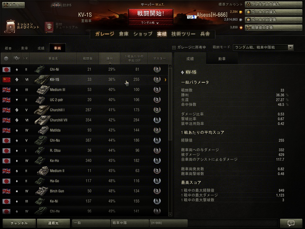 KV-1Sをゲットして2日目…33戦(初日3戦なので30戦にて)して