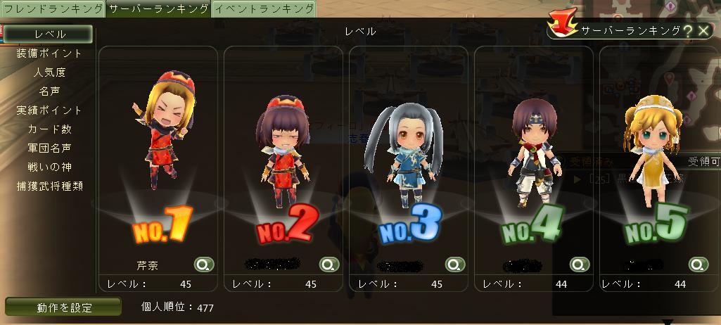 概ね順調に育っていると思いますよ。 昨日落ち目になってしまいましたが、Lv55時点でレベルランキング2位と微課金で頑張った方でしょう私凄いっ!w