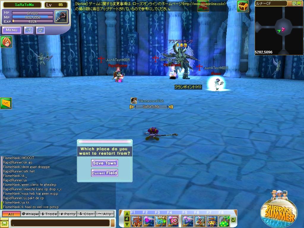 ルナCFも行ってきました。PKされちゃったけどとりあえず人が少ない感じです。また、ssに写っているクランも、アスキンを倒す時間で考えるとすこし物足りない…レベルの低い人たちなのかな?って思いました。よくよく見るとクランも黄色ネームじゃないしね^^;