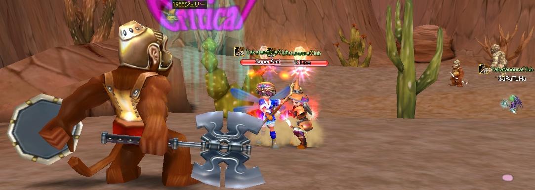 やっとの事で昨日までの分を取り返しました>< 今回はりなさんホカと狩り。レイダー予定だったホカはいつの間にか弓装備。うんうん対人はスカの方が有利かもしれない^-^b っとそんな構想を練りつつ…。 とりあえず洞窟で“私だけ”カートクエを終了し、そしてルナのMtウクレレへ♪いままでルナ上陸はLv70過ぎ転職が終わってからが多かったのでこの狩場はスルーしていたんです。今回はちょっとした気分転換も兼ねて行って来ました^-^w 経験値が洞窟に比べるといい感じ♪しかし…ドロップ無し。まったく;; まだ調整していないのかな>< ルナのMapなんだし液ぐらいドロップしてくれればいいのにねぇ汗 しばらく経験値優先で…と続けていたのだけどさすがにドロップが無いと飽きるのも早いです。 そんな訳で海岸のワニ~ドンキーの場所へ。 まぁしばらく続けていると飽きるのはいつもの事w そして渓谷へ移動♪ 狩場は入り口を入ってすぐ右手の場所。 スタンが効きにくいのだけどまずまず狩る事が出来ます。だた、さすがに敵が強いので、油断しているつもりは無いのだけどボコボコにされていたり>< スタンの成功率が高ければ良いんだけど…なかなか適正以上の相手なので難しいです_no