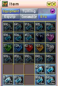 ■在庫溢れ現象! エーテルが2k以上。 ハイエーテルとエリクサが1.5k前後。 仕方が無いので値段を下げました;; 資金が続く限り買取継続しようと思ったのだけど、さすがにお金が減り続けると心配になってしまい、今回の決断に至りました汗 通信不良で露店を出せなかったのが売上に響いているのかなぁ…。 本来ならエルダン露店の価格を調査して変更しようと思っていたのだけど、今回エルダン1chが機能していなくて、露店も2chにまばらだったりしました。 後日また露店を確認して値段設定をしたいと思います><b