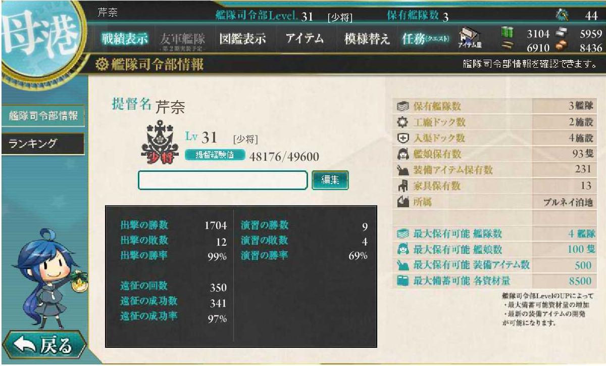 金剛型戦艦で残りの霧島が揃えばクエスト消化⇒第4艦隊開放になります。 資材物資調達手段が増えるわけですから早急に揃えたい! しかし戦艦の製造にはコストが掛かりすぎる・・・汗 金剛、比叡、榛名の3種類は偶然Getしたんです製造で立て続けに。 (参考レシピ:400/100/600/30) デイリークエストの建造で作ったものですけど、もうね、燃料無いんですよ。 3種類揃ったあとは全て失敗ですしおすし、今後続けても霧島Get出来るとは限らないし、ちょっと詰んでしまっているような感じ。