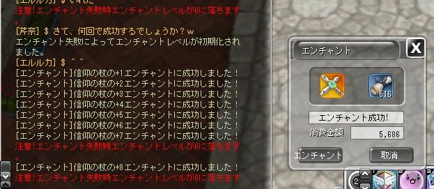 後発メイジの装備を精錬していましたら、+8がストレートで出来たので記念に激写!!ww