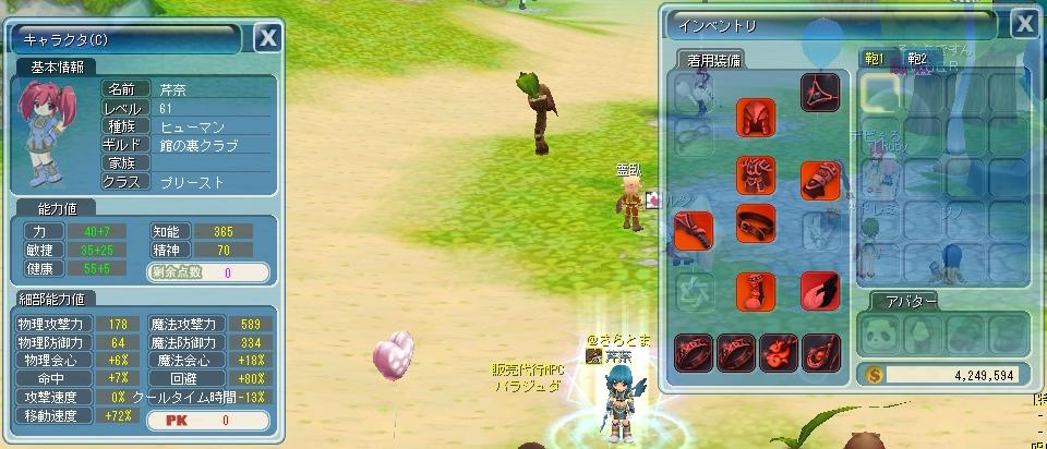 (装備の色が黒っぽくなっているのは適正以外の防具を装備したためで防御効果がありません><)