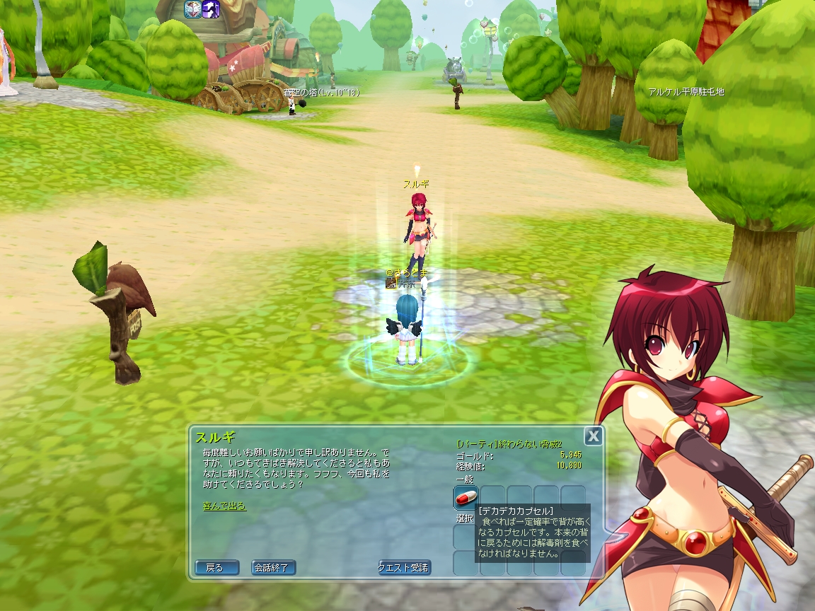 ゲーム内のヘルプNPCによるパーティクエストで、タリンなんとかのエリアまでクリアすると、同じタイミングで4つのクエストへと切り替わります。 そのクエストのうち2つは、「デカデカ」と「チビチビ」がクリア報酬となっていました。